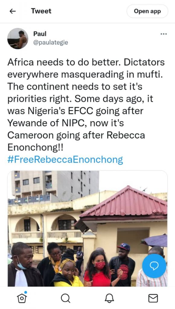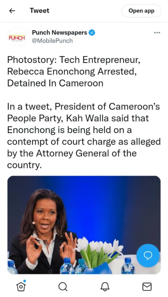 Enonchong’s detention has sparked outrage online with many individuals and organisations calling on the government to restore her freedom, in a country where such arbitrary detentions aren’t uncommon.