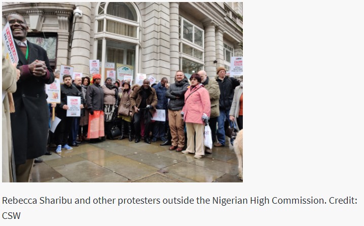 Rebecca Sharibu, the mother of 16 year-old schoolgirl Leah Sharibu, joined a protest outside the Nigerian High Commission in London, organised by CSW to mark the second anniversary of her daughter’s abduction and calling on the Nigerian government to do everything in its power to secure her release.