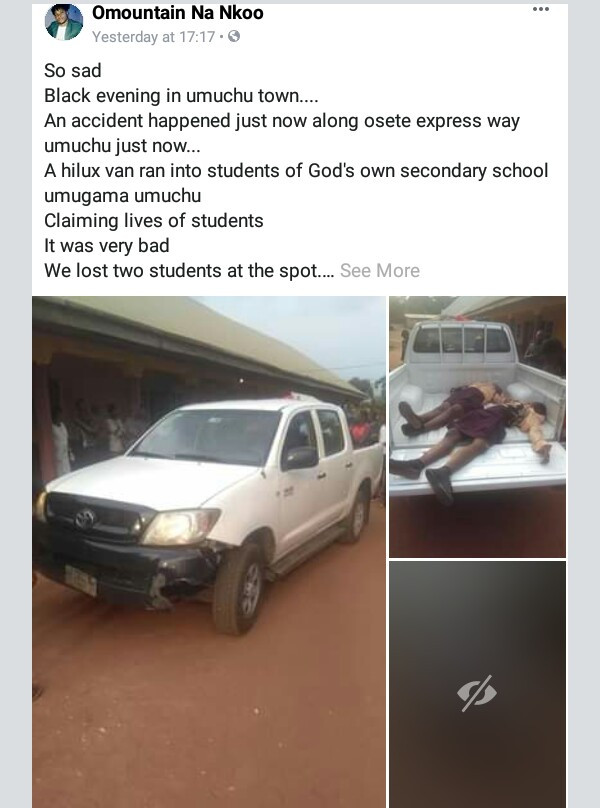 The students of God’s Own Secondary school, Umugama, were heading home when the Hilux van lost control and hit them.