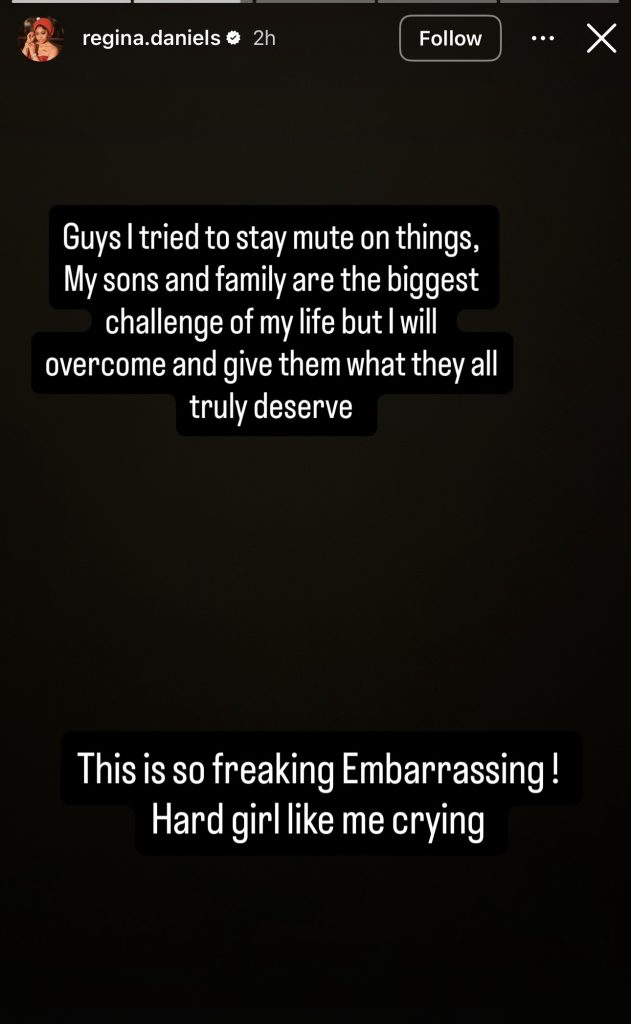 Nollywood actress Regina Daniels has taken to social media with a distressing post alleging that her estranged husband, Ned Nwoko, orchestrated the arrest of her siblings in an attempt to compel her into returning to rehab over alleged drug use.