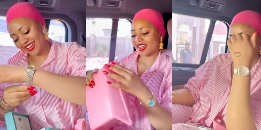 In her latest Instagram post, Regina Daniels shared a video showing her unwrapping a Rolex watch from its box, while seated in a car backseat.
