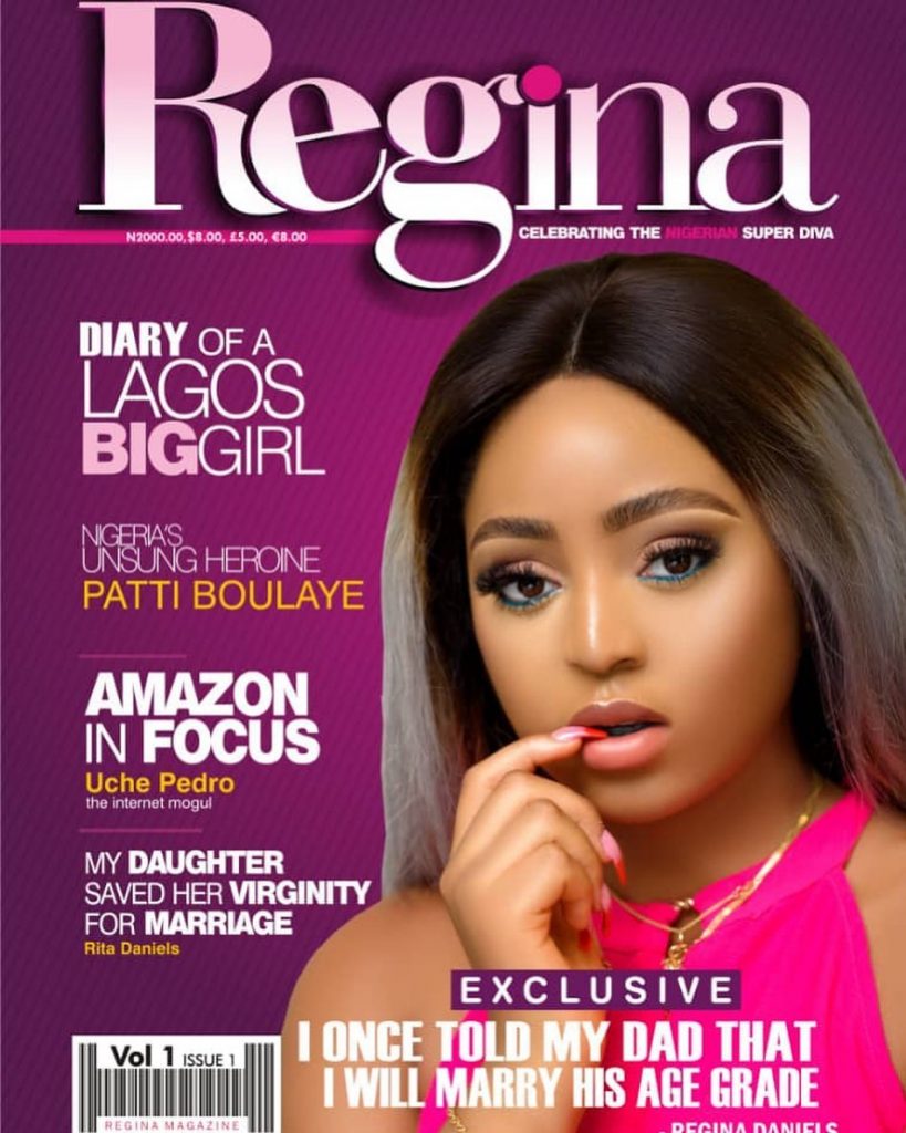 The debut edition of Regina Magazine encapsulates a myriad of fascinating stories about the publisher, which includes a story of the Life journey of Actress Regina Daniels right from when she was 7years old as an Infant-Actress until when she became a super-mega star.