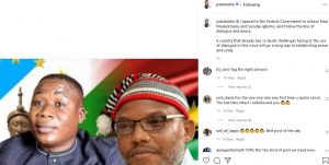 ”I appeal to the Federal Government to release Mazi Nnamdi Kanu and Sunday Igboho, and follow the line of dialogue and peace.