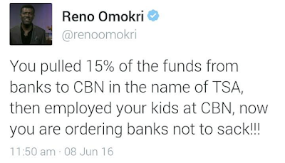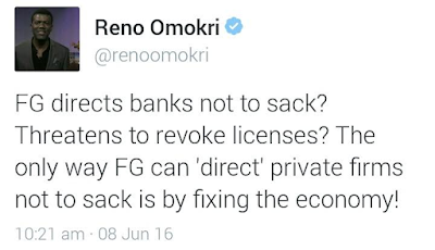 Senator Ben Murray-Bruce and Reno Omokri took to their twitter handles to react to yesterday’s order by the Minister of Labour, Chris Ngige, that Banks should halt all retrenchment exercises in their establishments or face severe sanctions. Continue to see more tweets after the cut