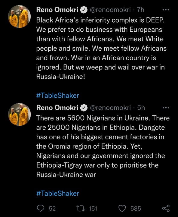 As Black Africans, let’s learn to put things into proper perspective. Not into CNN perspective. Dont elevate a regional conflict. The Russia-Ukraine war isn’t a World War. The Ethiopia-Tigray war, which has killed 150,000 people, is more deserving of Africa’s focus!