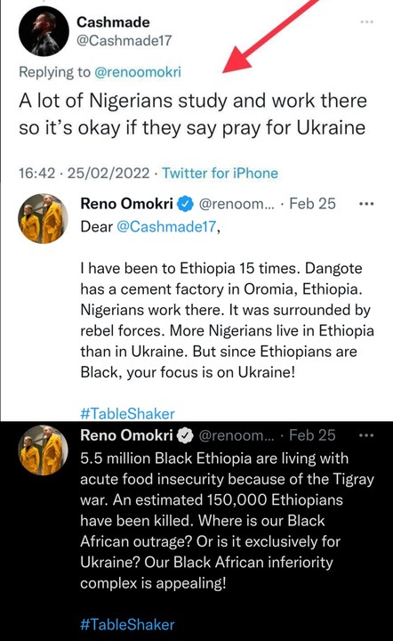 There are 5600 Nigerians in Ukraine. There are 25000 Nigerians in Ethiopia. Dangote has one of his biggest cement factories in the Oromia region of Ethiopia. Yet, Nigerians and our government ignored the Ethiopia-Tigray war only to prioritise the Russia-Ukraine war