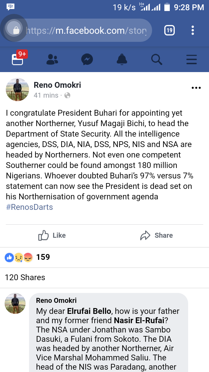 I congratulate President Buhari for appointing yet another Northerner, Yusuf Magaji Bichi, to head the Department of State Security. All the intelligence agencies, DSS, DIA, NIA, DSS, NPS, NIS and NSA are headed by Northerners. Not even one competent Southerner could be found amongst 180 million Nigerians. Whoever doubted Buhari’s 97% versus 7% statement can now see the President is dead set on his Northernisation of government agenda