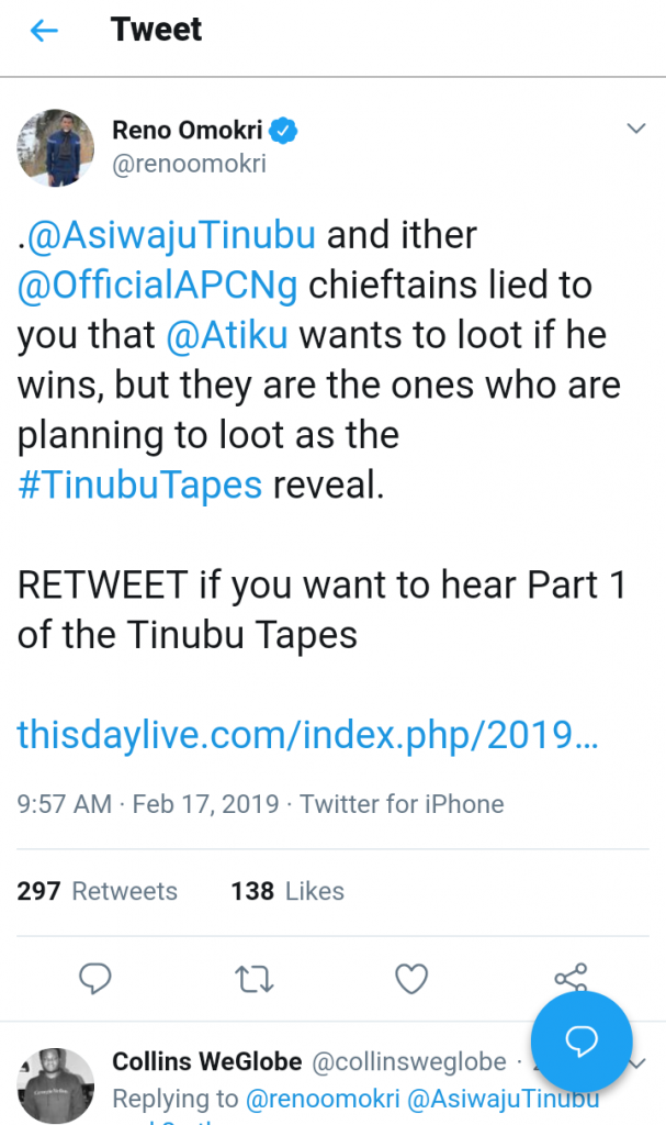 RETWEET if you want to hear Part 1 of the Tinubu Tapes”