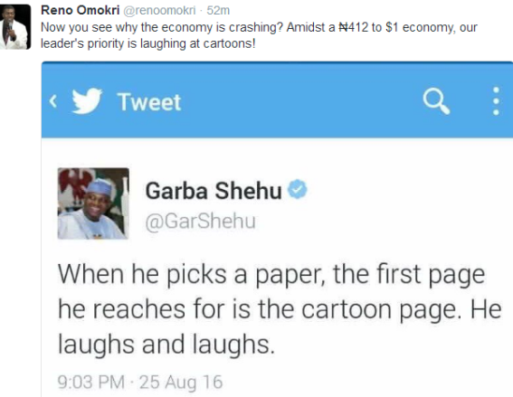 Reno Omokri reacts to Garba Shehu’s tweet that Pres. Buhari likes reading cartoons