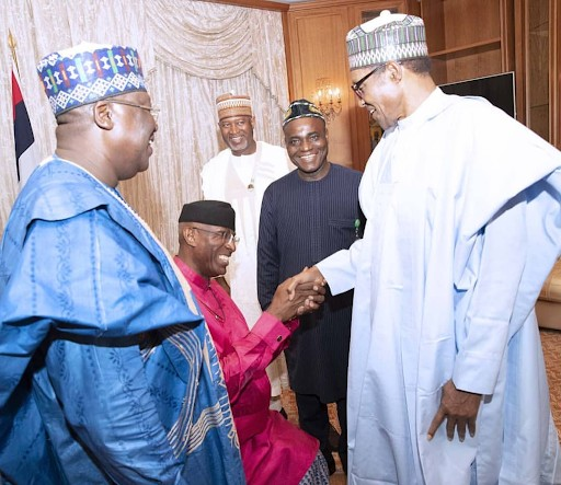Deputy President of the Senate, Sen. Ovie Omo-Agege, displayed his respect for President Muhammadu Buhari by kneeling to greet the nation’s leader Tuesday night.
