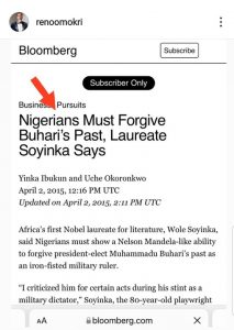 “It is false to say that I supported the election of Buhari. I only said do not vote for Jonathan.”-Wole Soyinka.