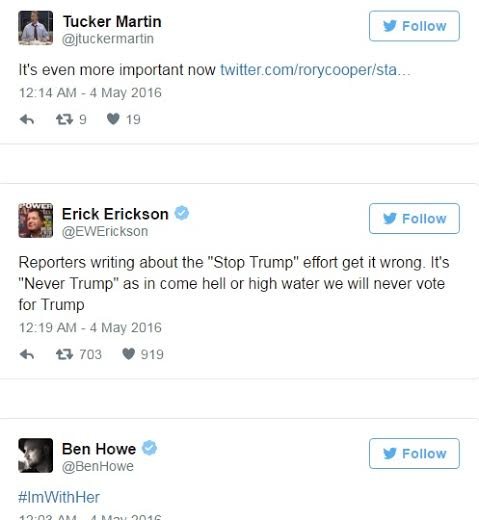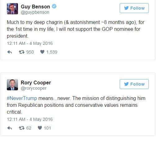 Republicans threaten to disown their party rather than vote for Donald Trump as party members use #NeverTrump on twitter