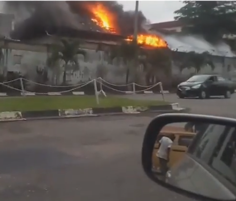 A residential building is currently on fire in Ikeja, Lagos. Twitter user @alashock who shared a video from the scene, said men of the state fire service are yet to arrive the scene of the incident