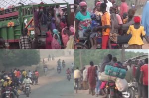 A video shared online shows men and women with their children in lorries and also on motorcycles as they fled with their belongings.