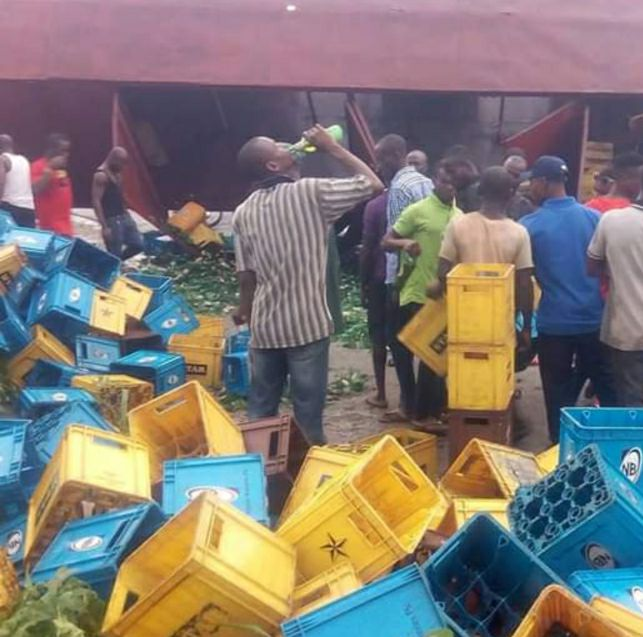 Residents Get Free Beer As Truckload Of Beer Crashes In Akwa Ibom (Photos)
