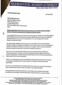 In a letter dated October 4, 2021, titled: “Re: Illegal Erection of High Structures and Refusal to Renew Expired Aviation Height Clearance Certificates by Globacom Limited” and addressed to the Managing Director, Globacom, obtained by SaharaReporters, it was affirmed that following the failure by Globacom to pay the the required fees amounting to N5.9 billion, the regulatory agency had no choice but to commence the dismantling of the its masts across the country.