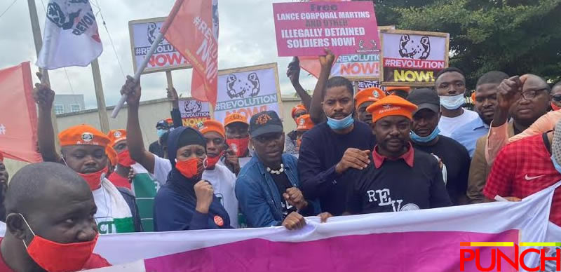 The PUNCH reports that many members of the #RevolutionNow Group on Thursday protested at the United States Embassy in Abuja over the security and socio-economic situation in the country.
