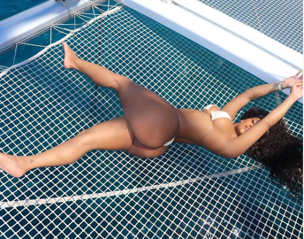 Instagram model, Lira Galore who is currently on vacation in Santorini, Greece shared these sexy photos of herself posing on board a yacht while clad in a white bikini.