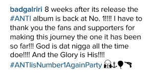 Rihanna's Anti album back at No. 1 on Billboard 200 - 9jaflaver