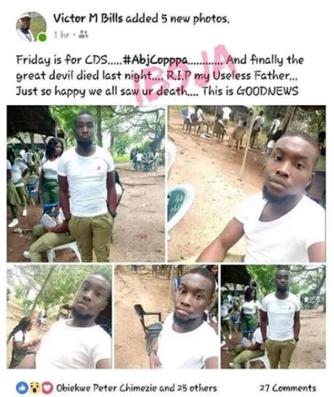 Over the past weekend, the story of a members of the NYSC serving in Abuja who mocked the death of own his father by celebrating the demise on social media, emerged online, and was trailed with criticisms and mixed reactions from many social media users.