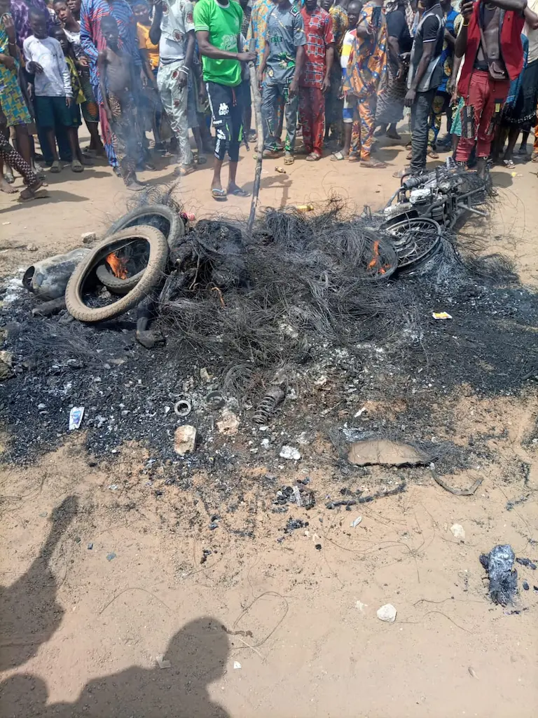 Two suspected ritualists have been set ablaze after being caught with a human head at Oja-Odan, Yewa North Local Government Area of Ogun State.