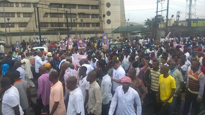 Some Rivers state indigenes came out this morning to stage a rally to welcome President Buhari from his medical trip to London. They also used the rally to express gratitude to the President for some of the developmental projects that have been penned down for the state. The rally was mostly attended by APC members in the state.