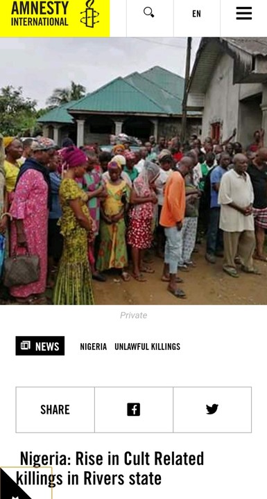 An investigation by Amnesty International reveals that the rise in cult related violence is as a result of government’s failure to investigate, arrest and prosecute perpetrators, as the culture of impunity continues to embolden further attacks. Residents also alleged that influential politicians often provide arms and protections to violent youth groups.