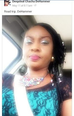 Abuja-based mother of four, Charity Aiyedogbon (Deepdeal Chacha De Hammer) went missing since May after announcing on her Facebook that she was going on a road trip. Here is the last photo she supposedly shared with the caption: