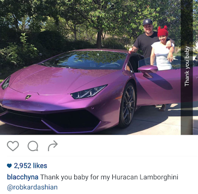 Rob Kardashian gave his fiancée, Blac Chyna a Huracan Lamborghini. Nice!