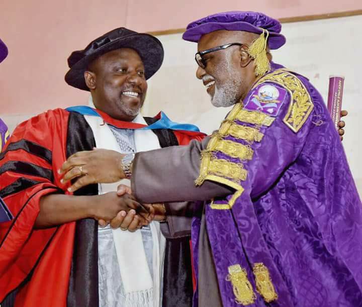 Imo State Governor, Rochas Okorocha, who was equally honoured with a Honorary Degree of Doctor Of Letters was impressed by the story of Mr Awe. He rose and said I would have like to take you out for lunch but for my time, however please kindly accept N500,000 for your lunch.