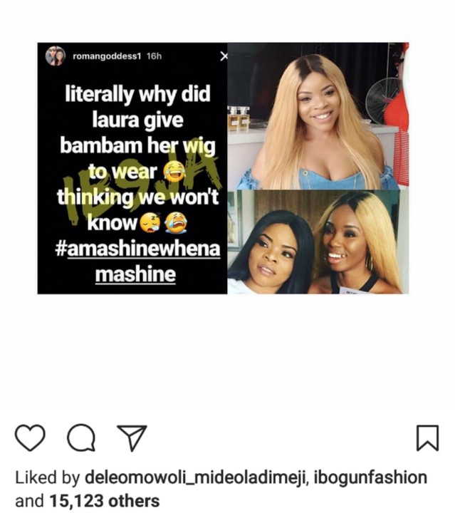 There are currently concealed mixed reactions on the internet after it was exposed that Laura Ikeji gave her wig to Ex Big Brother Naija 2018 housemate Bambam to cover her hair.
