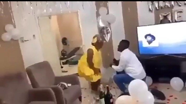 A romantic man has shocked his woman with a surprise proposal at their home after she came back from work.