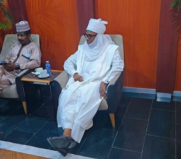 Former Minister of Transport, Rotimi Amaechi, adorned Northern attire to the funeral of his former boss, Muhammad Buhari, holding in Daura, Katsina state today July 15.