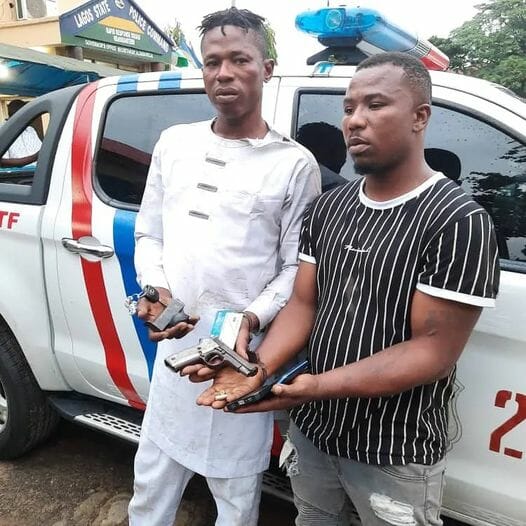 Following sustained crime surveillance patrols across suspected flashpoints in Lagos, the operatives of the Lagos State Rapid Response Squad (RRS), arrested two armed robbers in the early hours of Tuesday along Akowonjo Road, Alimosho.