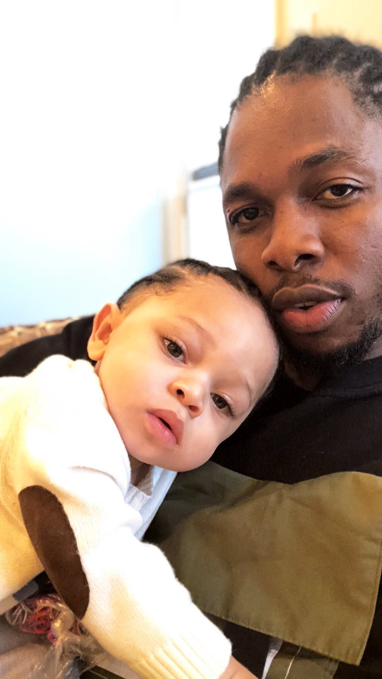 Nigerian Dancehall star, Runtown snapped with his son with American model, Selena Leath. The adorable Zamar who turns one by June is seen rocking a similar hairstyle with the ‘Mad over you’ singer.