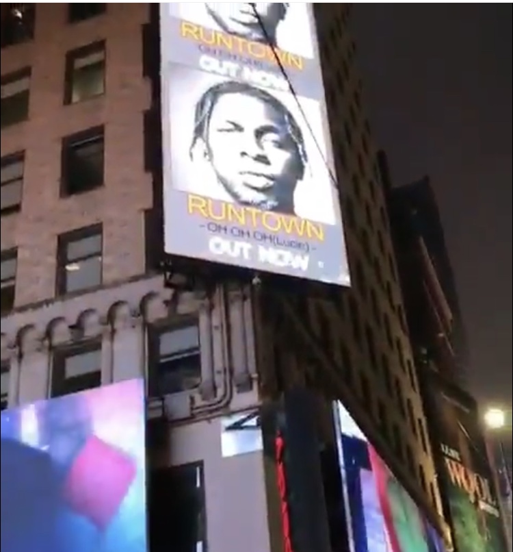 A giant billboard of Nigerian singer, Runtown has just been spotted in Time-square, New York following the release of the most anticipated