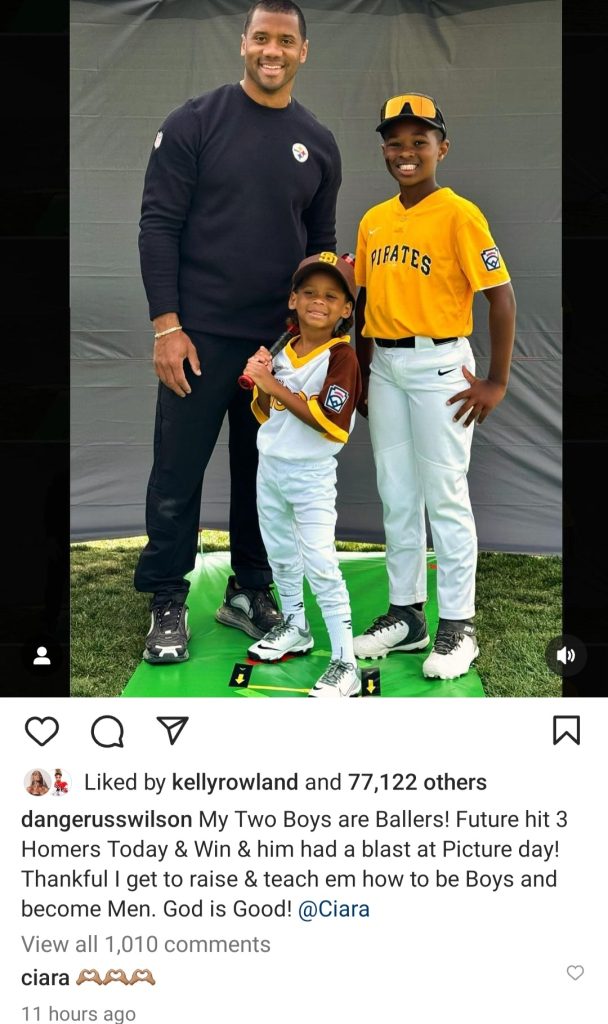 Russell Wilson is being hailed as the best stepfather after he proudly boasted about his sons being ballers.