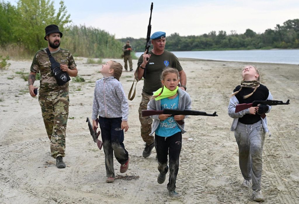 About 83 children — ages 8-17 — participated in last week’s activities, including a “route march” along the River Don involving running and crawling on their bellies across sand and shallow water while holding weapons and wearing camouflage uniforms.