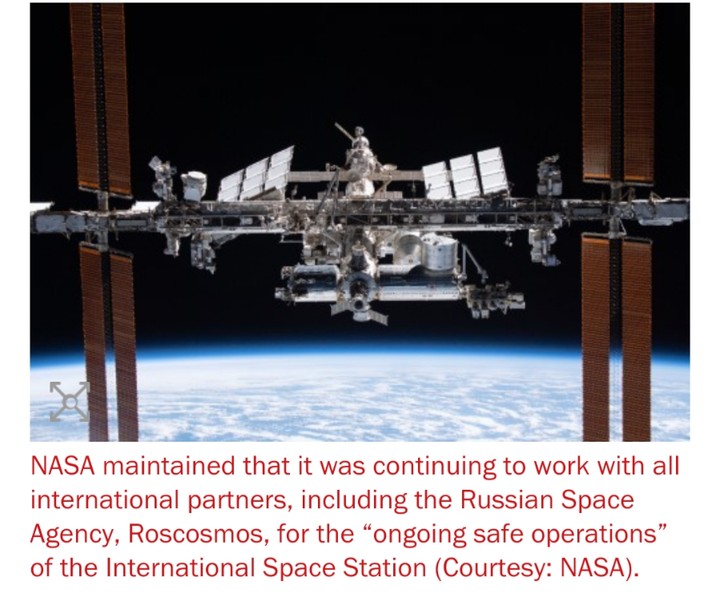Following the announcement by US president Joe Biden of a tranche of new sanctions, NASA issued a media release stating that it was continuing to work with all international partners, including the Russian Space Agency Roscosmos, for the “ongoing safe operations” of the International Space Station.