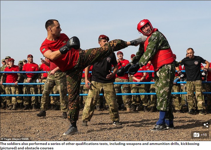 Russian soldiers have been captured slugging it out in a gruesome boxing fight as part of their qualifications for a special forces beret in a spectacular set of photos.