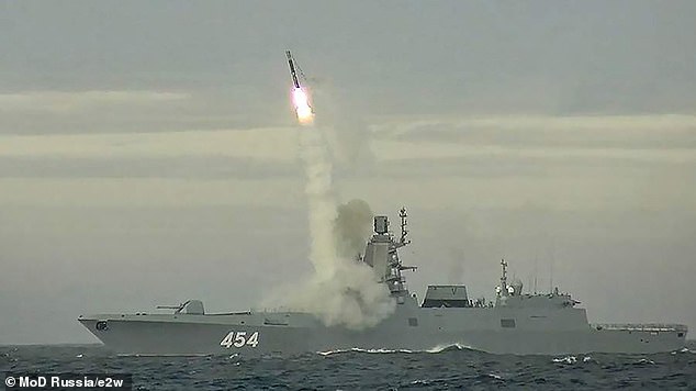 Pictured: Launch of an ‘unstoppable’ Zircon nuclear-capable hypersonic missile from the Admiral Gorshkov.