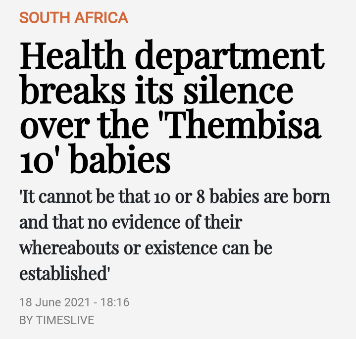 The Gauteng Health Department released a statement last week saying they had no record of the decuplets being born at any of the province’s private and public facilities. The Department of Home Affairs also said that there had been no registration of 10 babies born to a single mother.