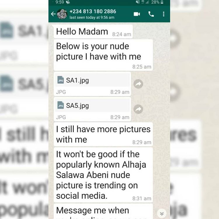 Salawa Abeni took to her Instagram page to share screenshots of her chats and the said nude pictures and wrote: