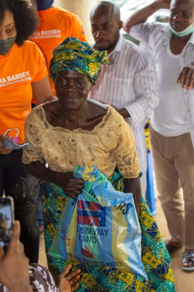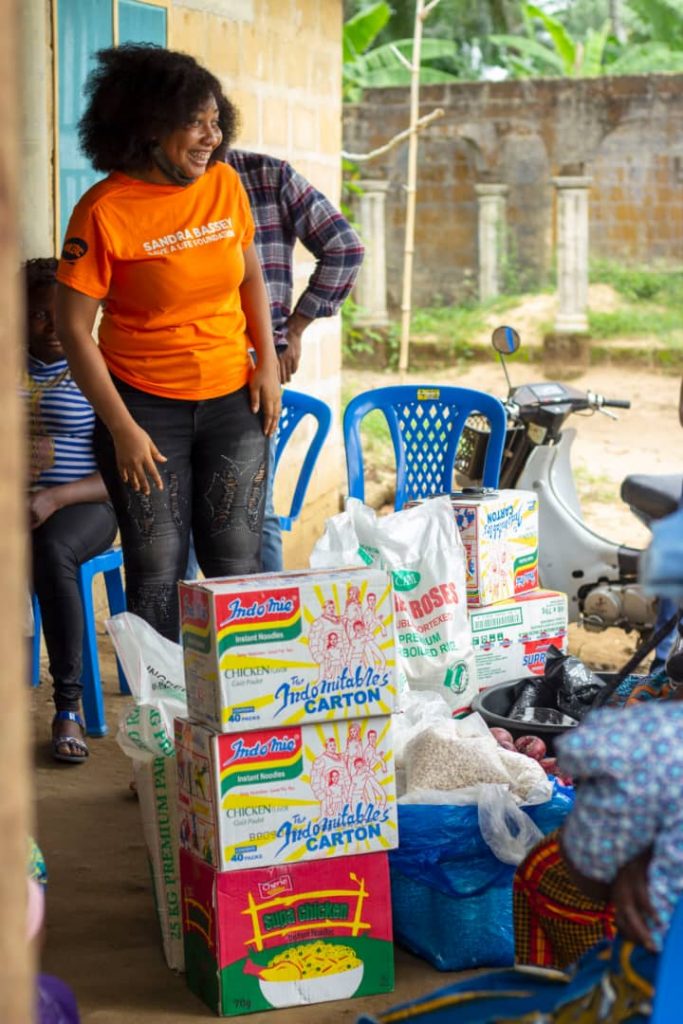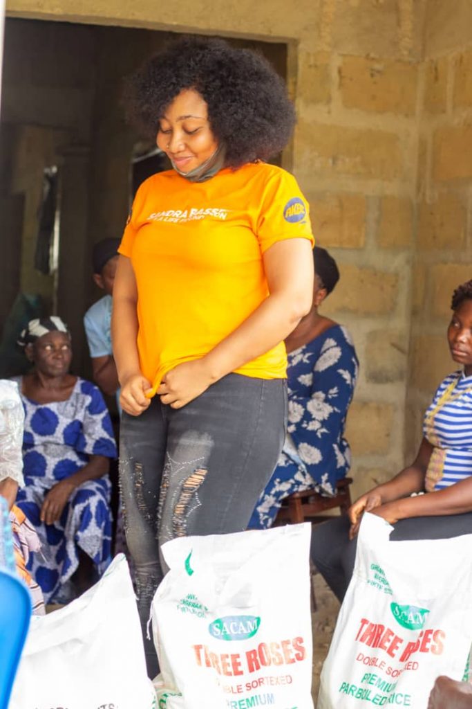 During the outreach, her Foundation, the SBSL Foundation, distributed foodstuffs in several bags of rice, beans, cartons of Indomie and onions to support downtrodden homes who depended on daily income, but are unable to respond to their basic needs as a result of the “lockdown” across states in Nigeria.
