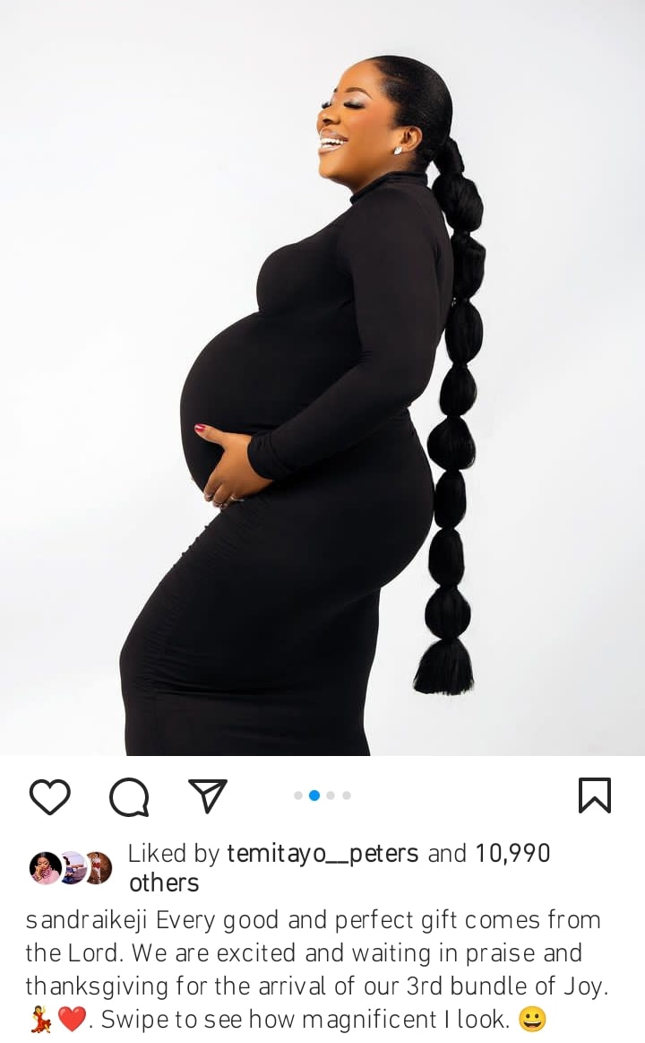 Sandra Ikeji, the younger sister of blogger, Linda Ikeji is expecting her third child with her husband.