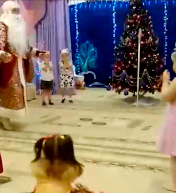The Russian Santa was energetically performing and running around with the youngsters before footage captured him coming to a stop and falling backwards.