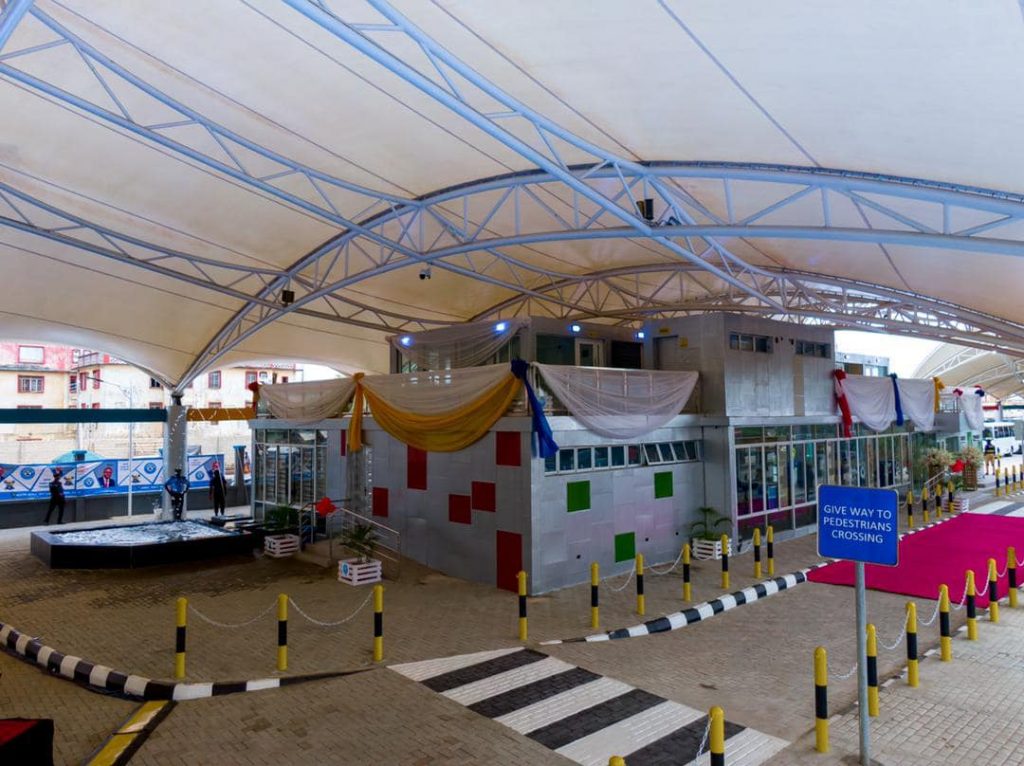 The bus terminal has loading and off-loading bay for up to 15 midi and 4 high capacity buses per loading time, stable for 20 high capacity buses and public conveniences, water treatment plant, perimeter fencing, perimeter lightning.