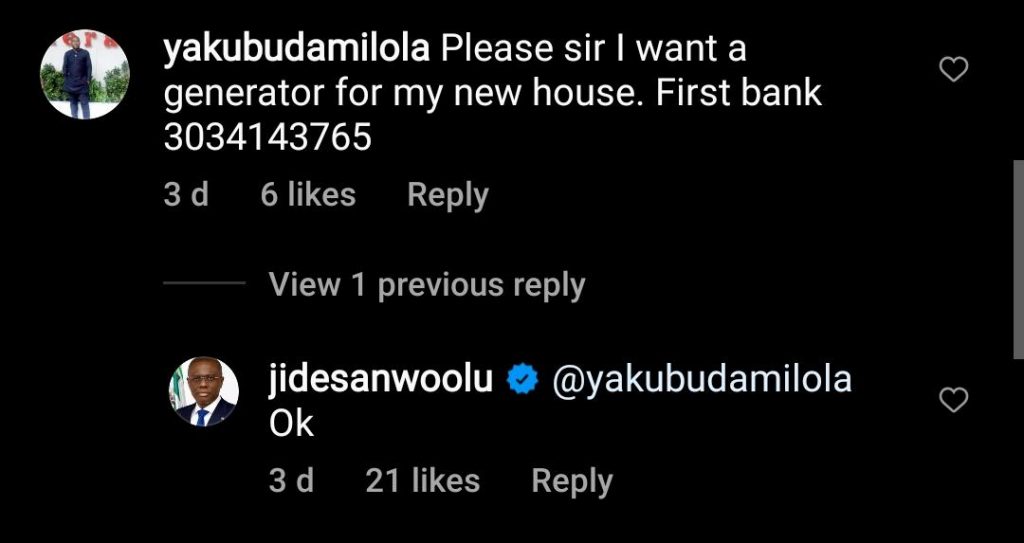Reacting to the governor’s post, someone asked the governor to practise what he preached while he dropped his account number requesting an urgent N10,000.