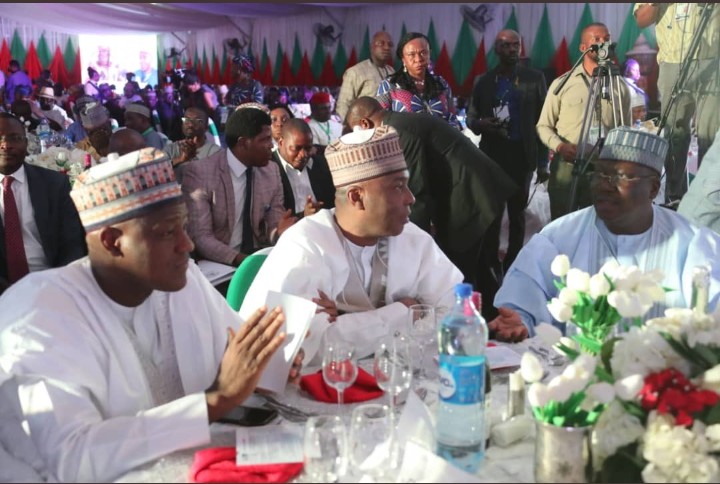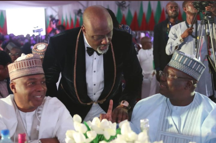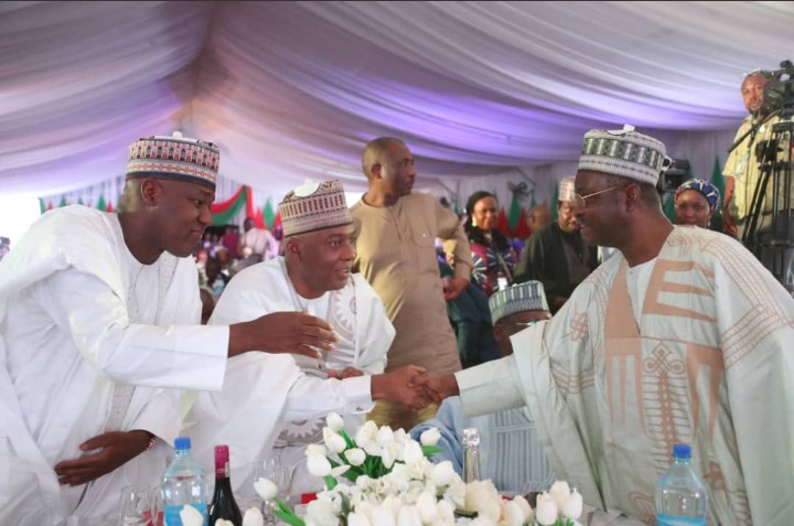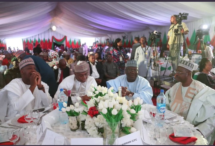 President of the Senate, Dr. Abubakar @BukolaSaraki, at the @NASSNigeria Dinner for incoming Senators of the 9th Assembly at Transcorp Hilton, Abuja.