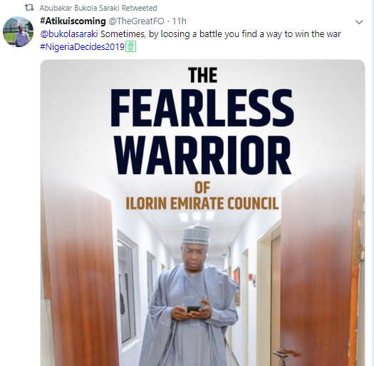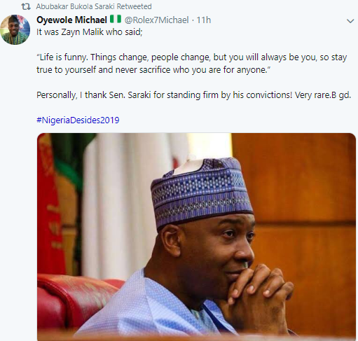 Following his loss at the Kwara Central senatorial district elections, Senate President, Bukola Saraki, appears to be taking succour from Nigerians via the motivational messages they are sending him via twitter.